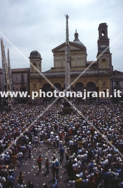 Festa dei Gigli. Piazza del Duomo, con i gigli giunti dai vari rioni della città . I gigli pesano molti quintali e sono trasportati a braccia dai fedeli